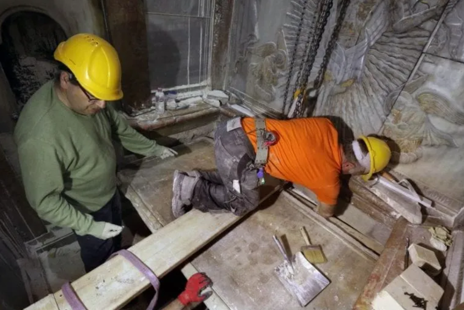 Después de siglos de deterioro por el agua y los daños estructurales, los científicos finalmente comenzaron una renovación largamente esperada de la tumba en octubre de 2016. Cuando retiraron una losa de mármol por primera vez en cientos y cientos de años, debajo de ella había un descubrimiento nunca antes visto.